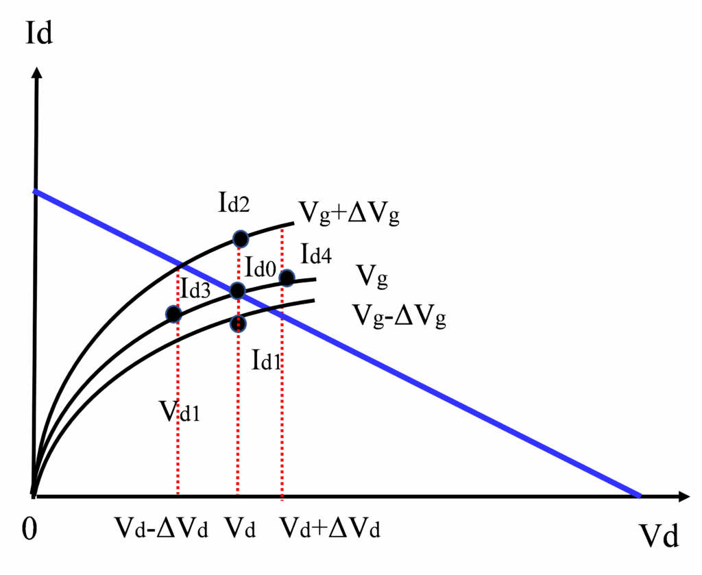 $$g_{ds} = \lim_{\Delta V_d \to 0} \frac{I_d(V_g, V_d + \Delta V_d) – I_d(V_g, V_d)}{\Delta V_d}\tag{2}$$