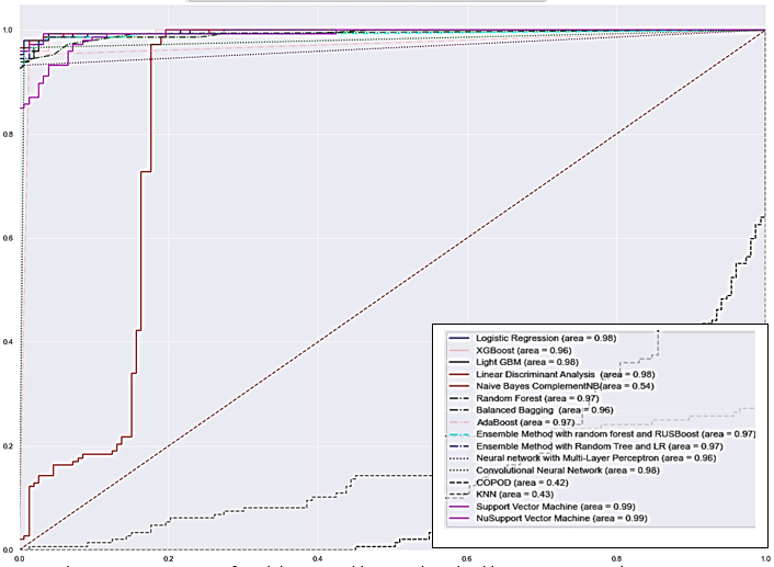 Note: horizontal axis represents false positive rate, and vertical axis represents true positive rate.
