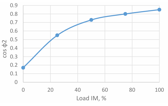 Load IM, % | cosφ2 | Load IM, % | cosφ2 | Load IM, % | cosφ2 |