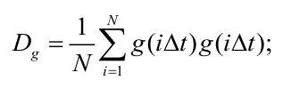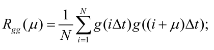 estimates of the normalized correlation function rRgg(μ) of the noisy signal g(iΔt) are calculated at μ = 0, 1, 2, 3, …