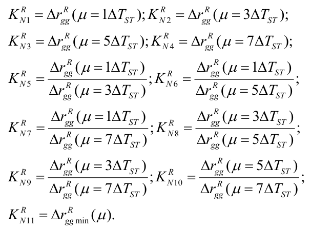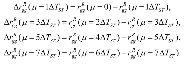 - The estimates of rRgg(μ=0), rRgg(μ=1∆TST), rRgg(μ=2∆TST), …, rRgg(μ=7∆TST) are calculated using the expressions: