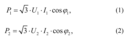 When calculating the consumed electric energy by oil-production equipment, it is necessary to take into account the active input (P1) and output (P2) powers of the frequency converter according to the following formulas [17], [18]:
