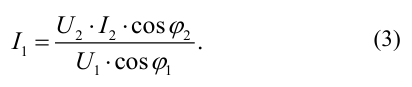 1) the power factor at the input of the inverter, taking into account the total harmonic distortion, is taken equal to 0.89, that is, cosφ2 = 0,89;