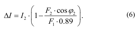 It is known that the value of the power factor at the inverter output cosφ2 varies depending on the degree of motor load from 0.17 to 0.85 [17], [18]. The values of the power factor at the inverter output, depending on the load for a common industrial induction motor, are shown in Table 1.