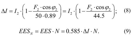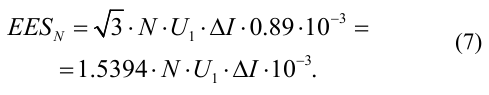 4 Using (7) and using the known input voltage U1, the value of electric energy saving EES per hour is determined.