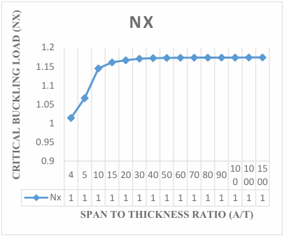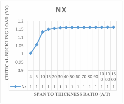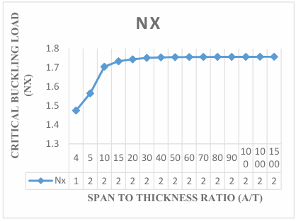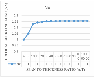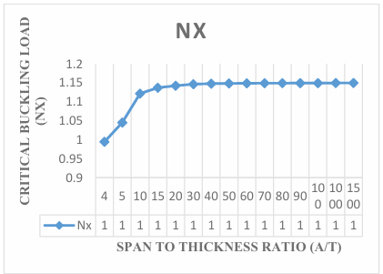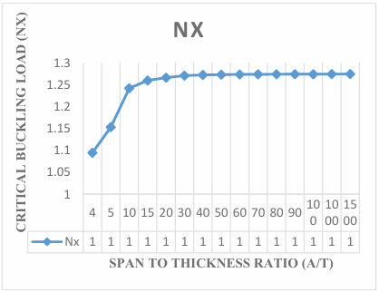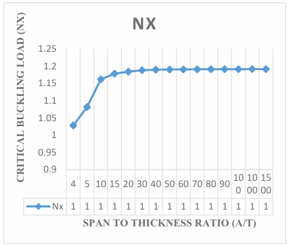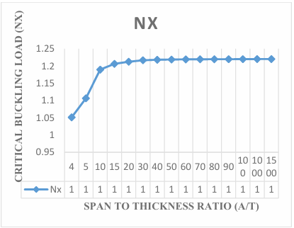 The results obtained in the Figures reveals that the values of critical buckling load increase as the span- thickness ratio increases. This reveals that as the span or the depth of the plate is altered, it affects the performance in terms of the serviceability of the plate. Thus, caution must be taken when selecting the depth and other dimensions along the x and y co-ordinate of the plate to ensure safety and accuracy of the analysis.