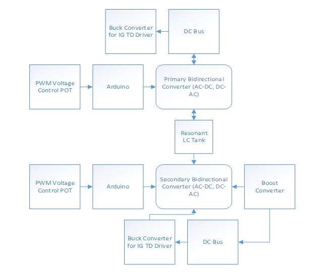 For desired DC to DC converter LC resonant was used to couple the two inverters such that DC side of first inverter was used as input of the whole converter. Then the first inverter AC side was given as input to LC resonant tank for fixed frequency operation. Resonant tank output was given as input to AC side of second inverter [11–19]. DC side of second inverter is used as output of whole converter.