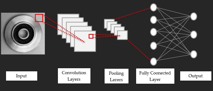 A CNN is a fully connected stack of numerous convolutions, pooling, and ReLU correction layers. Each received image will be filtered, shrunk, and rectified multiple times before being converted to a vector [3].