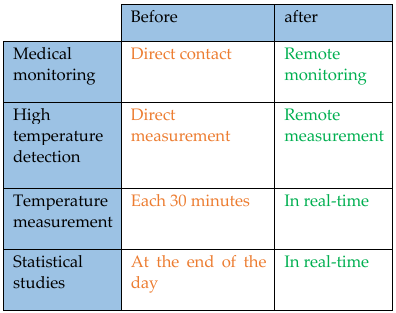 Our platform of medical telemonitoring is designed for the Covid-19 suspected cases. In this regard it will inevitably reduce the over spread of that contagious virus. As described in the table below comparing the situation before and after our telemedicine platform: