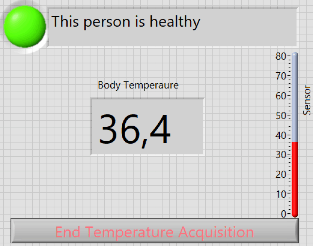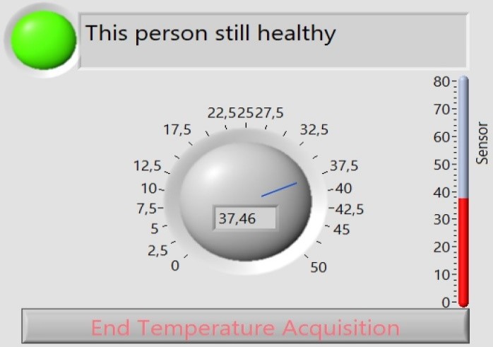 The figure (3) shows the simulation of the developed interface using LABVIEW with normal and abnormal temperature value.