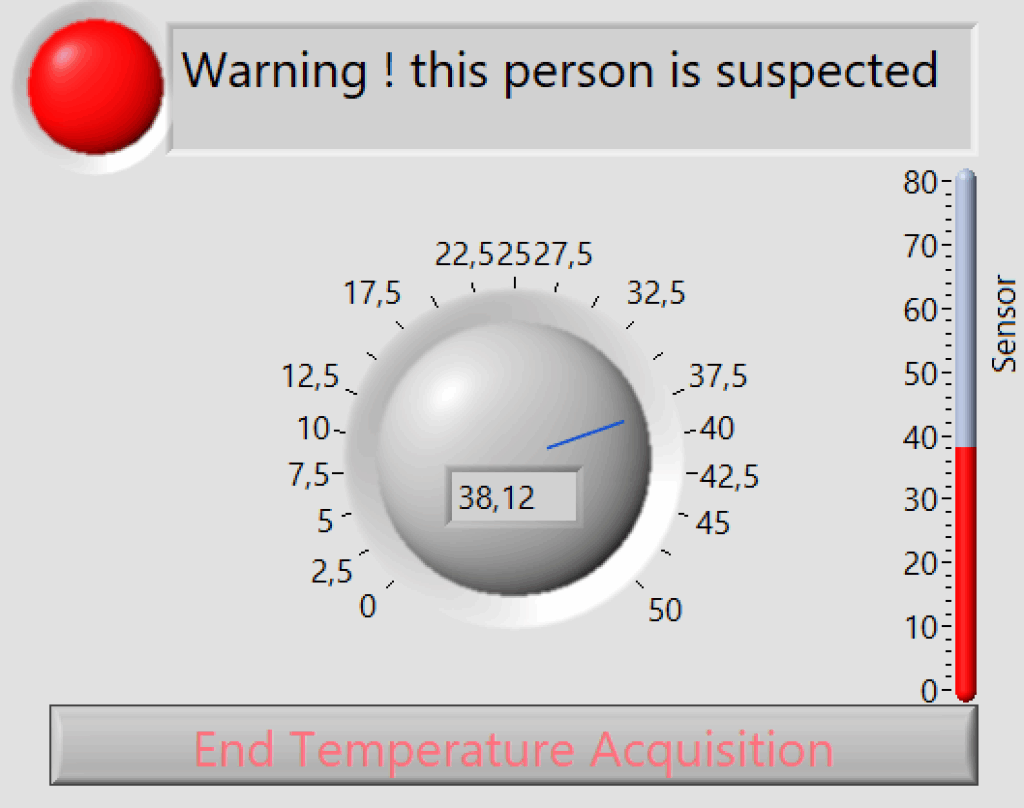In order to develop the POC (the proof of concept) of that solution, several didactic and academic items were. Such as the wireless shield for Arduino (NodeMcu) as a wearable network sensor node to acquire remotely the vital parameters of the suspected cases. For sure this last associated to the other sensors to enhance and confirm the feasibility of the project. Otherwise because of the covid situation there was no way to highlight the practical side of this research. In the same regard many interfaces were developed using LabVIEW, some of them are illustrated in this paper but others couldn’t be inserted like the bloc diagram of the LabVIEW program. The next step of this research work is to move to the manufacturing process of the project including all the parts software and hardware.