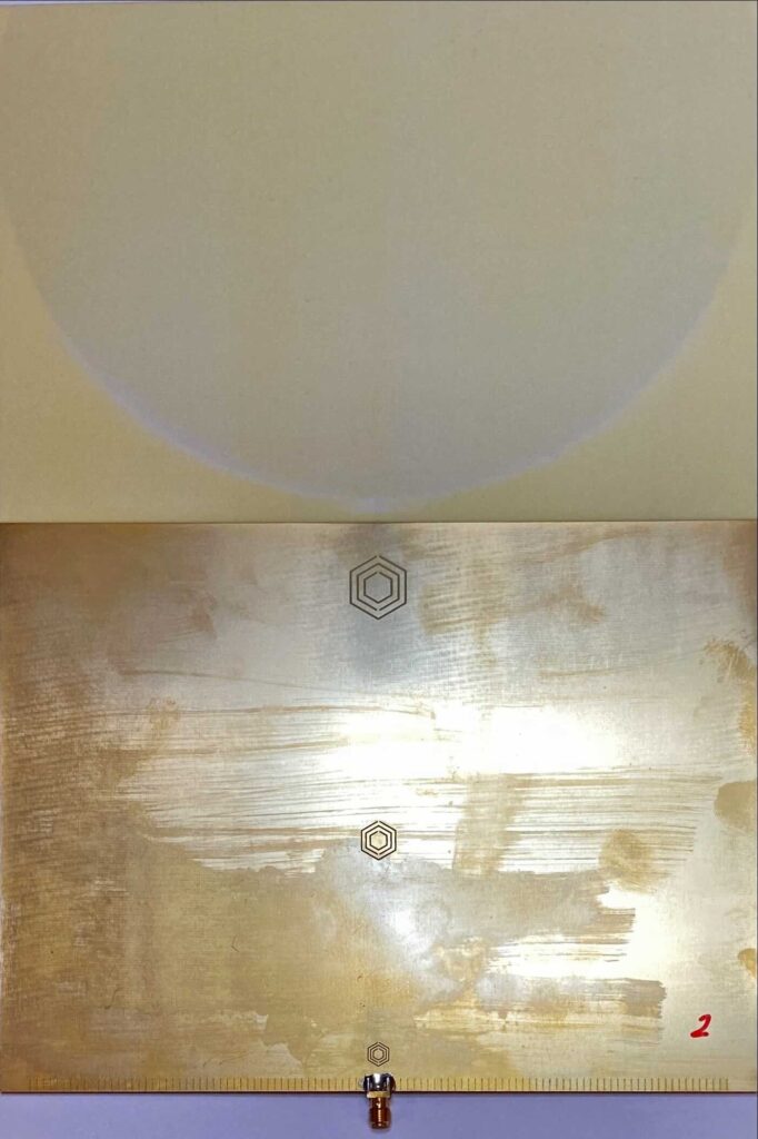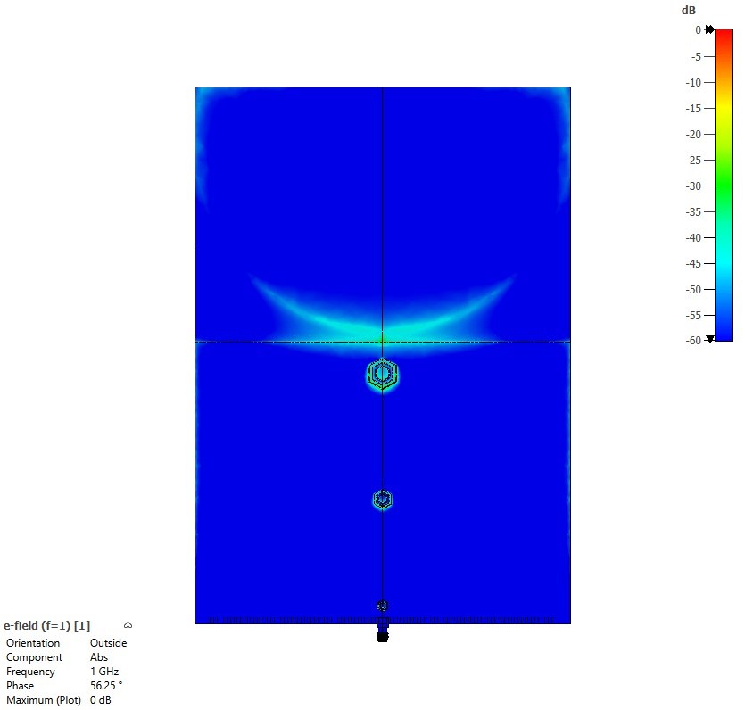 In Figure 5, the front view and back view of the electric field distribution are presented. Electric field density around the hexagonal CSRR structures in Figure 5 indicates that CSRR structures are effectively utilized for bandwidth enhancement. A closer look at the area where the SMA connector is located demonstrates no sign of conduction problems as it is also predicted by looking at Figure 4.