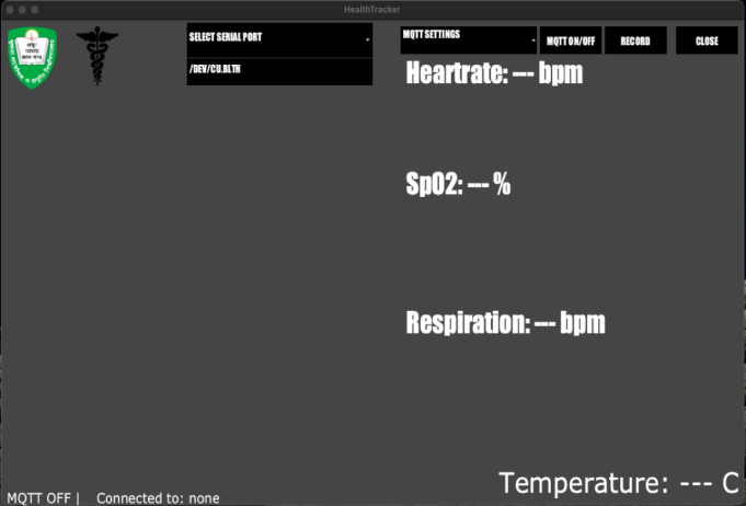 The data was then visualized using the Java environment. Serial data were plotted using the plotter, as shown in Figure 4. The data showed mild distortion, which was further removed by filtering the data. The acquired data was stored as a CSV file. Fig. 5 shows the GUI. The GUI method enables to the opening of a command or function on devices by clicking or pointing to a tiny picture, known as an icon or widget, such as tabs, buttons, scroll bars, menus, icons, pointers, and windows.
