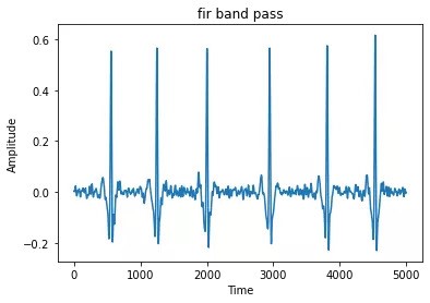 The FIR bandpass filter smoothens the obtained signal (Figure 7). As the signal was obtained by one standard lead system, the highest amplitude obtained after filtering the signal equals 0.6 mv, which is standard for one standard lead system data acquisition of ECG signal.