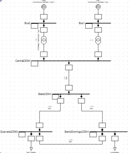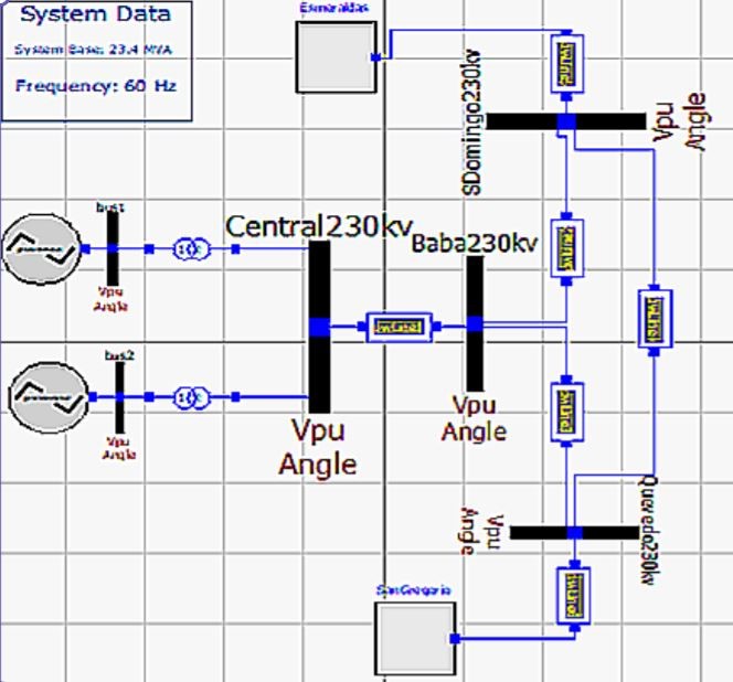 An infinite bus is the main bus of a power system with constant frequency and voltage (both in magnitude and angle). This research analyses the problem of a machine connected to an infinite bus via a transmission line. In general, fast excitation systems are usually beneficial to transient stability following large impacts by driving the field to fast response without delay. However, these abrupt changes in excitation are not necessarily beneficial in damping the oscillations that follow the first swing, and they sometimes contribute growing oscillations several seconds after the occurrence of a large disturbance [23]. We properly design the exciter as a mean of enhancing stability in the dynamic range as well as in the first few cycles after a disturbance. We consider two infinite bus implementations: the Esmeraldas and San Gregorio 230 kV buses. Input power-flow data for the non-casual system in those buses were from PF and is shown in Figure 12 for Esmeraldas as an example.