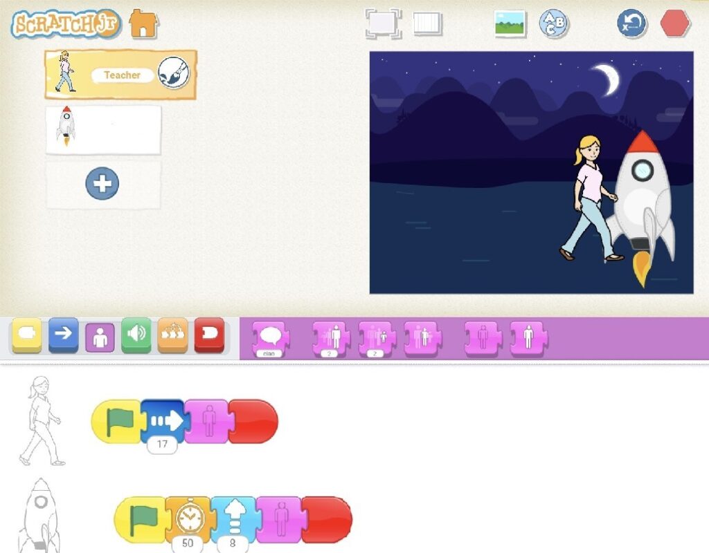 During the first year ScratchJR is then used to learn how to use blocks in sequence.