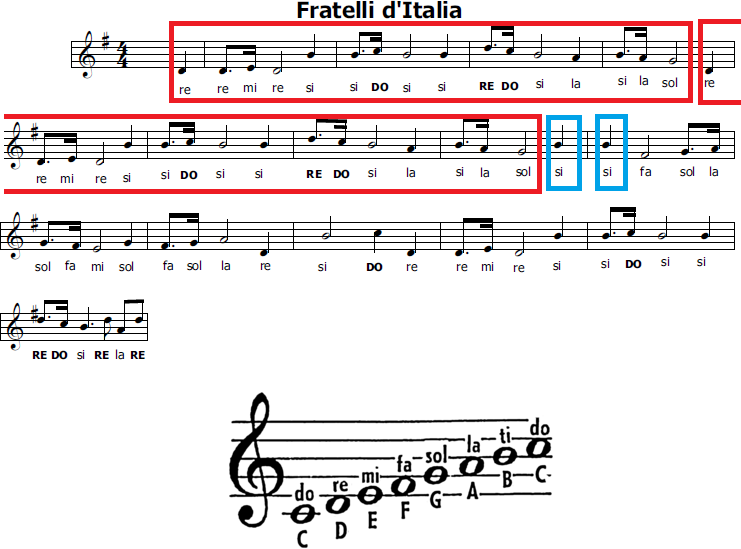 It first involves the music teacher, with whom the score of the anthem is analyzed looking for repetitions of groups of notes, as shown in Figure 13. Next comes a thorough understanding of the notes and their encoding in Anglo- Saxon notation, necessary for programming, through the transformation table in the same figure.