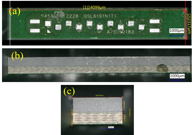 2) Sample cross-section: The samples were discharged from the HAST chamber, followed by cross-section to expose the possible moisture invasion paths.