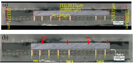 Figure 3a. shows the cross-section and optical image of the LGA sample with dimension measurement. Both Batch A and Batch B are with the same structure. From the structure, it is suggested there are 3 most possible moisture invasion paths to the die. These 3 paths are discussed as below (see Figure 3b).