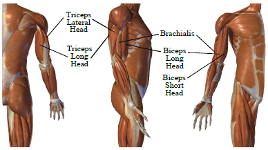 Healthy humans take their elbow joint function for granted, but as researchers try to tackle this joint, they realize how complicated this joint is. The elbow joint consists of and is a pathway to a lot of different types of bone structures, tissues, vessels, and fibers [22,23], however in this work we are focusing on the muscles responsible for flexing and extending the joint which can be divided into two groups [23].