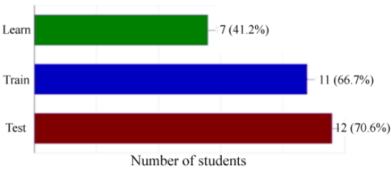 The authors also queried participants about their preferred mode of preparation for the exam. The findings depicted in Figure 15 revealed that Test and Train modes were the most favored options (70.6 and 66.7% respectively).