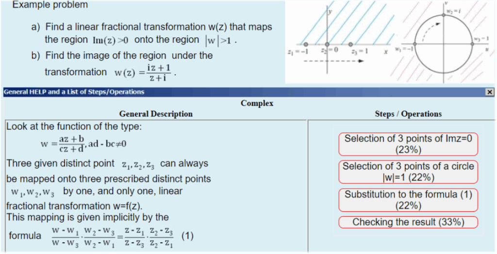 Throughout the course, students are provided with a comprehensive set of basic problems that cover the entire curriculum. Typically, this set comprises 50 to 150 problems, arranged into 13 weekly assignments for one semester [31]. In Learn mode, students are presented with a series of problems, each of which includes randomly selected parameters to ensure that different attempts produce different initial sets of parameters. Students have the opportunity to request help, which is provided at three levels: General help, which describes a solution method common to all problems within a particular topic; a List of steps to solve a problem with a description of each step; and the Result of each solution step. In Train mode, students are presented with multiple-choice options for the possible results of each step, facilitating extensive and interactive training. In Test mode, no help is provided, and the student is required to complete a series of tasks that simulate the conditions of a regular test.
