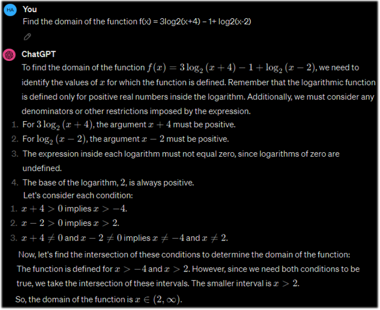 Such interactions between a student and three Chat-Mat tools – ChatGPT, Graph Plotter and Algebraic calculator provide the opportunity for a deeper understanding of the subject, despite the possibility of ChatGPT solving the problem incorrectly.