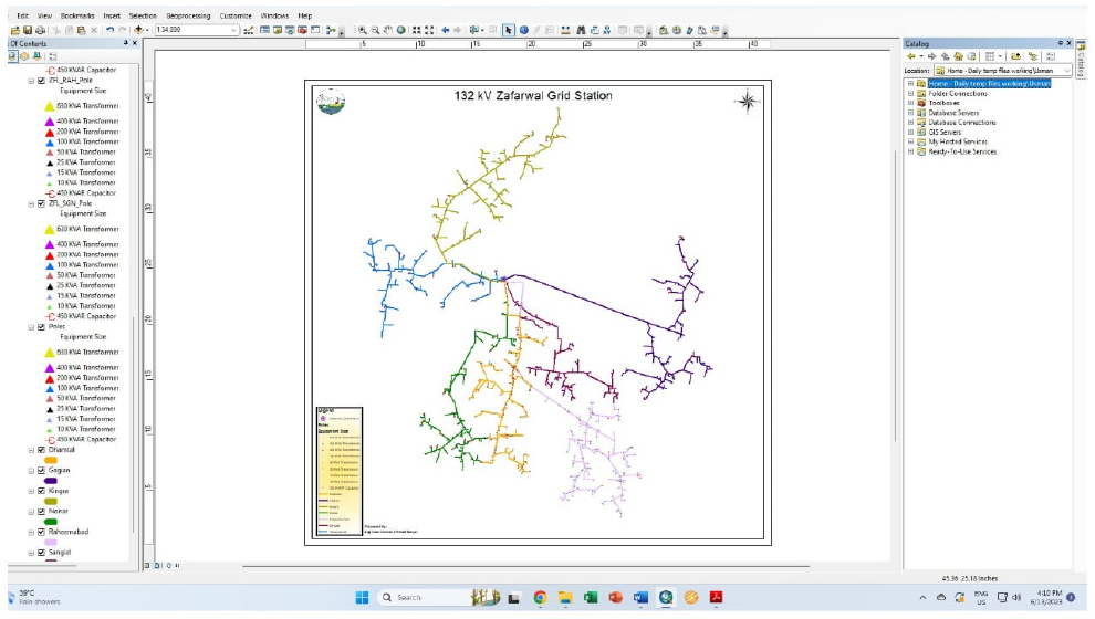 After completion of the site survey and completion of data entry, the entered data detail is attached with waypoints through Arc GIS Software for a geographical database of the electric network. Arc GIS gives us two types of files one for Synergee Electric software that is known MDB file and other one is KMZ file which is used to view real time data at Google Earth [12].