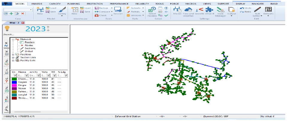 The required data carried out for the simulation has been collected from the 11-kV distribution network of GEPCO. The collected data is from 132 kV Zafarwal Grid station located in the vicinity of Narowal. The grid has been selected on the basis that it is a high loss and has a higher voltage drop, which is feeding to rural area tube well-dominated feeders. Most feeders are Agricultural. Data is collected through GPS device and Data sheet [20].