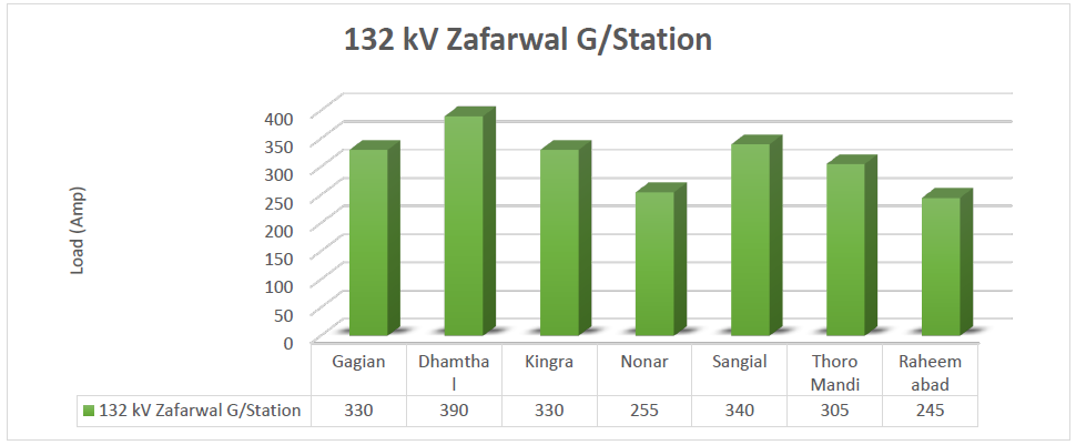 The main purpose of considering the above 100 A winter loading is that the power generated is utilized locally without flowing back toward the transmission/ distribution system. Therefore, peak winter load is used for the selection of feeders. These 11 kV feeders are emanating from 35 No. 132 kV G/Stations. To make this research work viable, 132 kV Zafarwal Grid station is selected as a case study whose 07 Number Feeders are suitable and fulfill the criteria for DG placements.