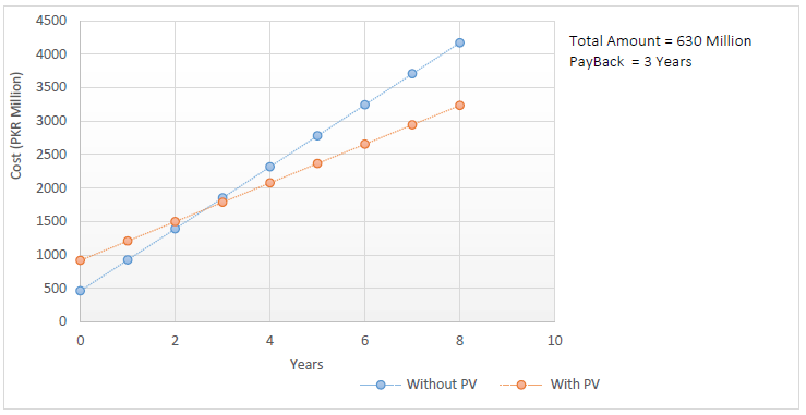 Cost per watt including installation & operational charges = 90 PKR/watt | (9) |