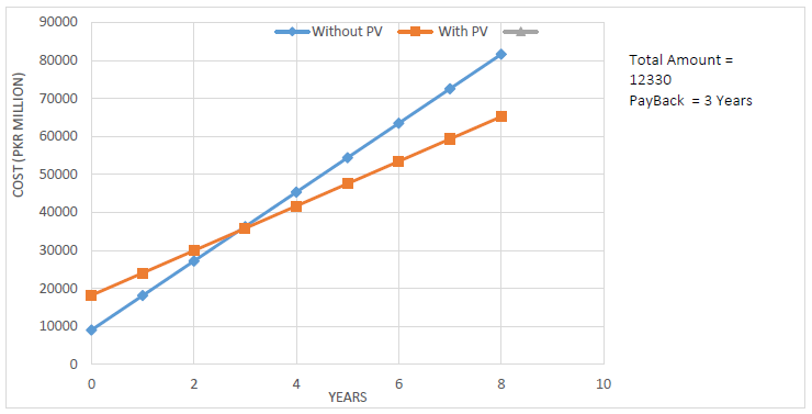 Cost for 137 MW PV in Million = 137 x (90 x106) / 106 = 12330 Million | (12) |