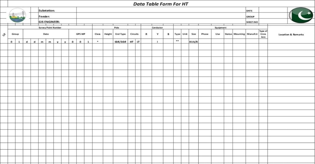 Details of waypoints/poles in entered on the Data entry sheet i.e. Date, group, waypoint number, pole height, conductor type, pole height, transformer detail, and number of circuits, etc. The Data entry sheet is shown in the figure 3.