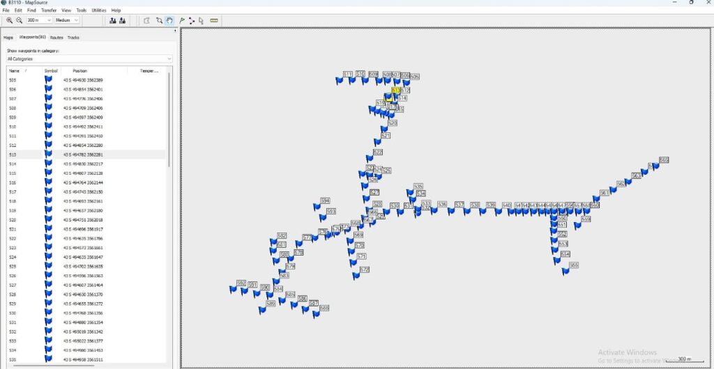 GPS data is exported through map source software from the GPS device into a GPX file for data joining purposes through Arc GIS software. The figure 4 shows the waypoints on map source software.