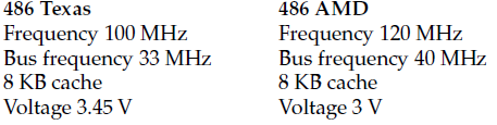 The 486 was the first device of the x86 family to integrate the floating point unit (FPU) and a cache memory (8 kB) on the same chip. The actual acronym of the processor with FPU was 486DX. At the same frequency, the performance of the 486 was 2 or 3 times higher (depending on the type of processing) than the performance of the 386. With the 66 MHz DX2 version the performance of the 486 reached 54 MIPS.