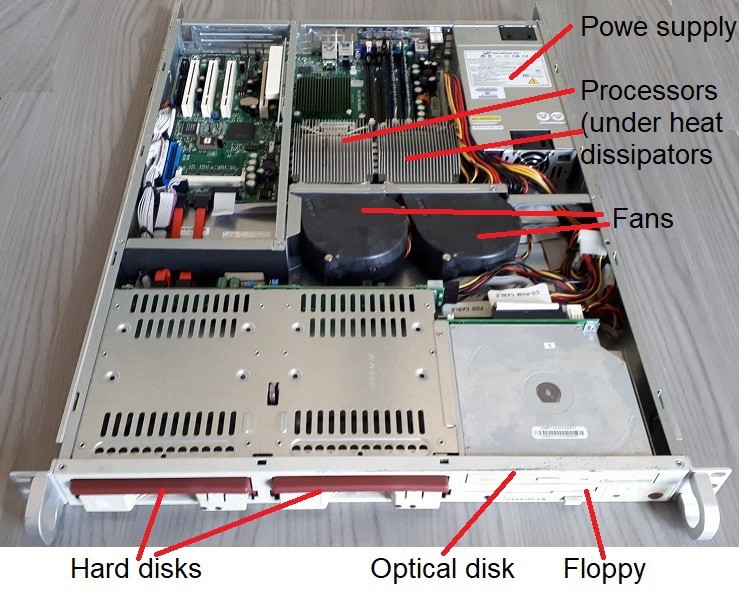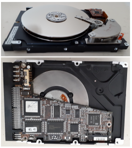 The exhibit is made up of some display cabinets where the various pieces are exposed. These include microprocessors, memories, disks, personal computers, both desktop and laptop, as well as some (parts of) systems of medium and low size. An example of a display case is in Figure 1. Most of these objects come from the same School of Engineering in Florence, where, at the end of their usage period, they were declared down and made available. Some materials come from private individuals.