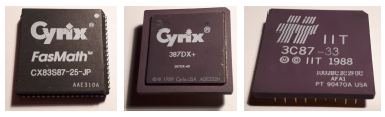 A specific coprocessor was introduced for the 386, the 80387. Figure 57, shows three specimens on display.