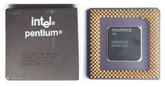 The Pentium (Figure 60), introduced in March 1993, was the first microprocessor of the x86 family to cross the 100 MIPS threshold. These were the characteristics at the time of introduction: clock frequency 60 MHz; 3.1 million transistors, across 2.16 square inches, in a 273 PGA; 32-bit architecture.