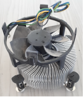 The ASUS board of section 4.5, described on page 9, had the heat sink of Figure 68. It was mounted in contact with the microprocessor, with a thermal paste interposed for heat conduction. The heat sink is made up of a radial pattern of winglets, between which the air is moved by the fan. A heat- conducting paste is always placed between the processor and the face of the heat sink that comes into contact with it. This is to determine a uniform contact surface.