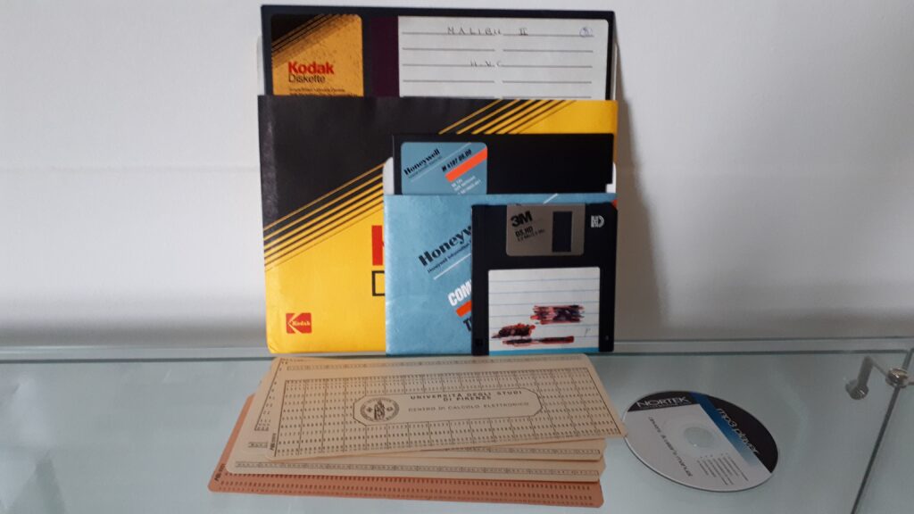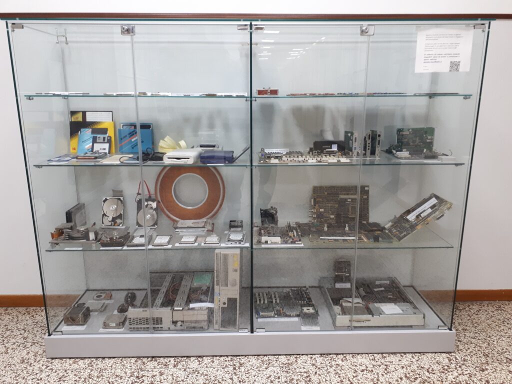 The described exhibit has been set up to evidenziate, the pace of advancement of the technologies related to computers. A large part of the described elements belonged, in the past, to the teachers in the Faculty; they were incorporated into the exhibit after they were abandoned due to obsolescence. The perspective is to continue to enlarge the collection, adding newer and, possibly, outstanding devices of the past.