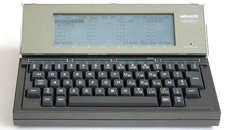 The LCD had 8 lines of 40 characters (240 x 64 pixels, black and white); the keyboard with 94 keys it had the QZERTY layout (Italian layout used by Olivetti on its typewriters). It used a proprietary operating system from Microsoft, equipped with Basic, a word processor, an agenda, an address book, and Multiplan (Microsoft’s first spread- sheet before Excel), all on ROM. It is said that Bill Gates participated in the development of the programs and that this was the last time he directly programmed.