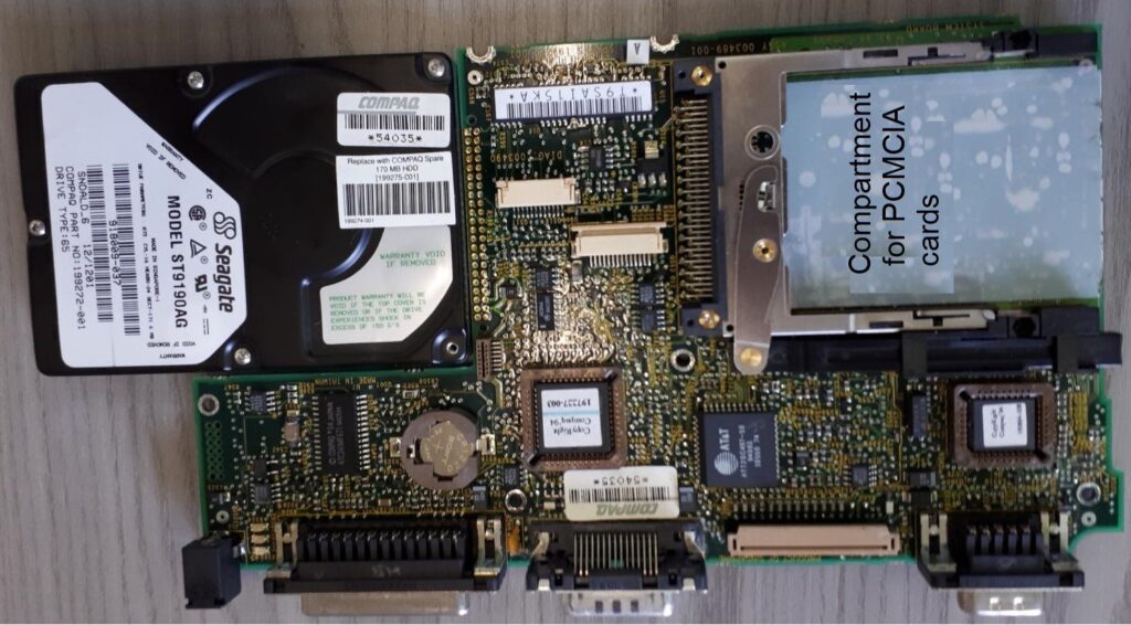 The Compaq Aero line was produced in various versions, with different processors, disks, and memories from the second half of the 1980s until around the mid-1990s.