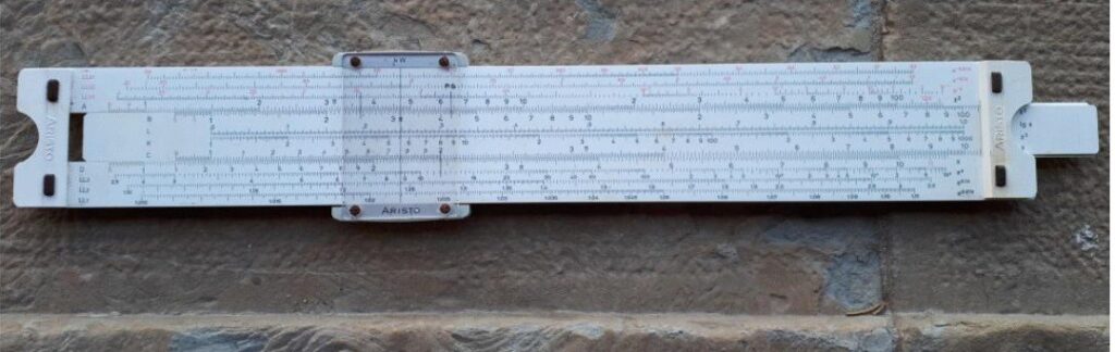 Until the advent of pocket electronic calculators, the slide rule was the calculation tool of choice for the technical- scientific community. In its pocket form, it often peeked out from the breast pocket of engineers’ jackets. The ruler allows, with a few maneuvers, calculation of multiplications, divisions, squares, cubes, exponentials, and some trigonometric operations. It is based on the properties of logarithms. Since the logarithm of the product is equal to the sum of the logarithms of the two factors [log(xy)=log(x)+log(y)], it follows that if the numbers are represented in a logarithmic scale their product is obtained by positioning in a sum fashion the two logarithmic scales on which the numbers are represented. To this end, the slide rule is made up of three elements: (i) a body on which there are fixed scales; (ii) a sliding ruler, inside the body, also provided with numerical scales; (iii) a cursor with one or more reference lines.