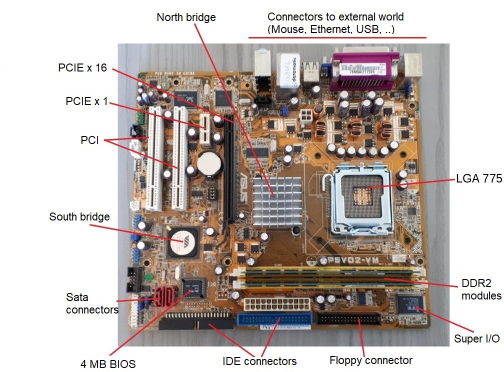 The example on display (Figure 62) was mounted on the ASUS P5D2-VM motherboard described on page 9 on which the LGA 775 socket can be seen. A heat sink and the related air movement fan were mounted on the microprocessor (see Figure 68).