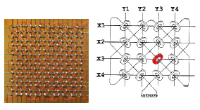 Current optical mice still use an LED to generate light (the most refined ones use a laser to illuminate the support surface) and a very small camera for image acquisition. The camera is a CCD (Charge Coupled Device) sensor with a resolution of approximately 15×15 pixels on a surface of a few square millimeters. The output of the CCD is taken to a DSP (Digital Signal Processor) which carries out image processing. In practice, a comparison is made between the images detected at subsequent clocks, and the movement is calculated from the comparison, which is passed to the computer. All the logic in question, including the CCD and the interface to the computer is contained in a specific integrated circuit.