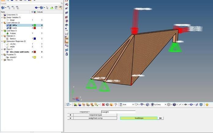 Finally, the optimization was executed using OptiStruct, a process that involved a systematic approach to refine the bamboo bike frame’s design in alignment with the set objectives and constraints.