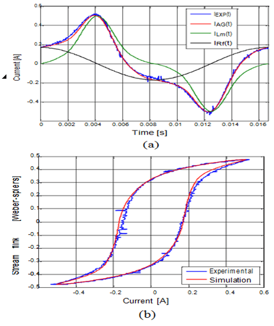 Figure 4(b) shows the experimental and simulated 𝝀−𝒊 loop. The experimental 𝝀−𝒊 loop has the same shape as the B-H loop of the material used in the construction of the magnetic core.